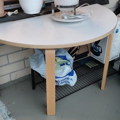 91 vuoden 88B pikkupöytä. Vaatii kunnostusta, pinnassa jälkiä. Salamalla otetut kuvat, jotta näkyy mahd hyvin todenmukainen kunto kolhuista. Pinnalle ei tehty itse mitään, alkuperäinen lakkaus jne.