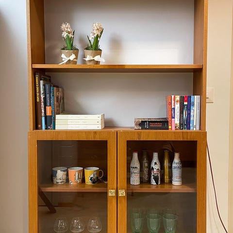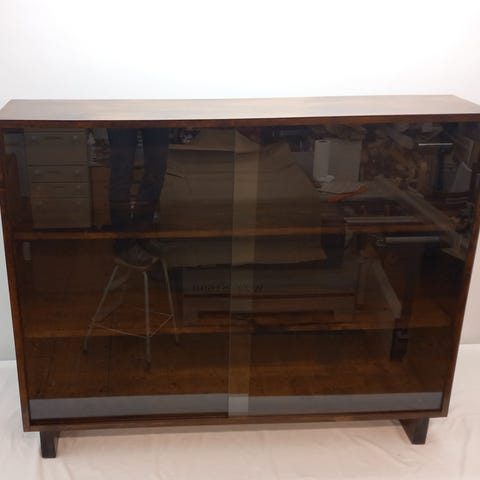 Myyntiin ylimääräisenä ehjä vitriini/kirjahylly. Arviolta 50/60-lukua.