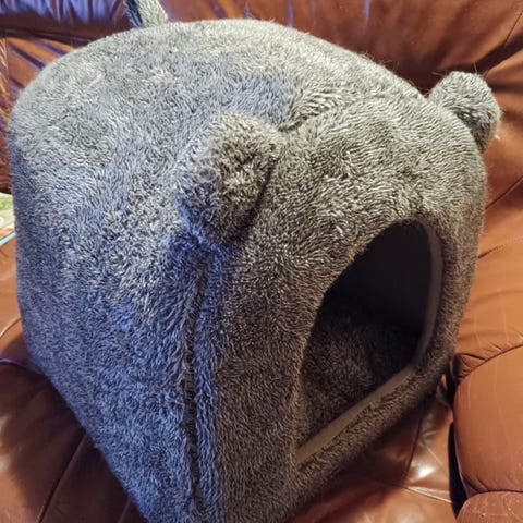 Söpö koiran/kissan mökki kattotasanteella. Käytön jälkiä löytyy.