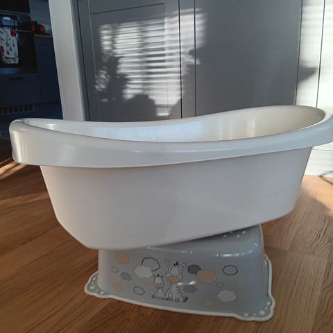 Siisti emaloitu kylpyamme pituus 160 cm, leveys 70 cm, korkeus 50 cm. Ammeen pohjassa pikkuriikkinen jälki pinnoitteessa (kuva), muuten moitteeton. Etulevyn toinen "nappula" puuttuu, se ei ole haitannut käyttöä, mutta jos se häiritseee silmää, niin rautakaupasta löytyy vastaavia.