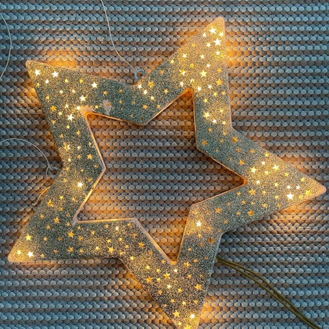 Joulu koristelyhty. Valaisin on varustettu valosarjalla.