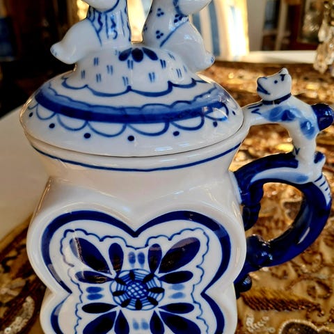 Koristeellinen iso posliinikannu: