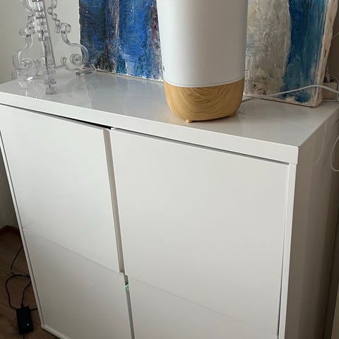 Ostettu Torista, alkuperästä ei tietoa. Käytön jälkiä löytyy mm keskimmäinen vetolaatikko romahtanut alemmas mutta toimii. Sivussa pientä kulumaa.
