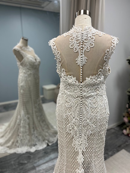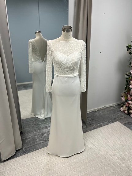 Puku sovitettavissa ReBridalissa, Espoon Leppävaarassa. Meillä on laaja valikoima pre-loved -hääpukuja, sekä suomalaisten suunnittelijoiden poistokappaleita. Voit varata ajan sovitukseen verkkosivuiltamme (rebridal.fi)! Löydät tämän puvun verkkosivuilta sekä Instagramista (@rebridaloy) numerolla 237.