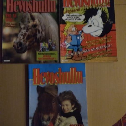 Hevoshullu sarjakuva-lehdet 2, kuvanmukaisia, useilta vuosilta 1989 - 1991 väliltä. Yhteensä 14 kpl, kaikki erillaisia.