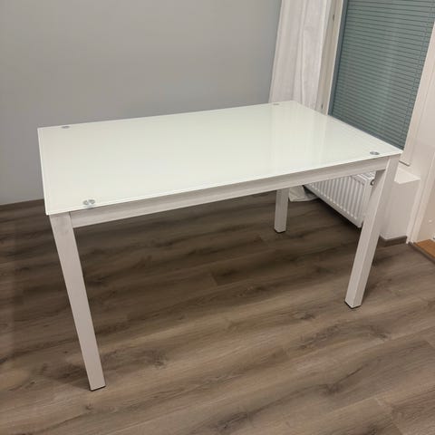Yhdellä sivulla lasipinnan reunassa pientä nirhaumaa, mutta ei näy ylhäältä katsottuna.(katso kuva)