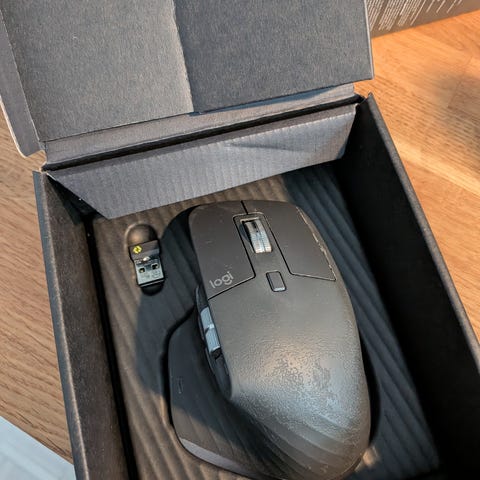 Logitech MX Master 2S Ergonomic mouse. Requires some cleaning but works perfectly. Dongle included, works with Bluetooth too. Small damage under thumb button, but buttons works fine. Pickup from Helsinki center or Vallila.