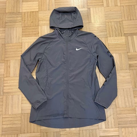 Nike Running naisten juoksutakki, koko M. Takki on keltainen, pilkullinen ja valmistettu kevyestä materiaalista. Soveltuu juoksuun ja muuhun urheilukäyttöön. Kai-kai 51cm ja kokonpituus 65cm.