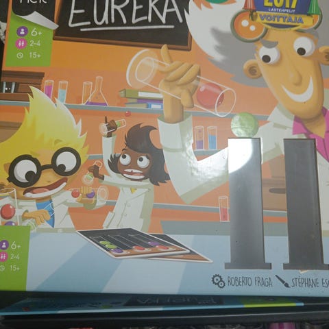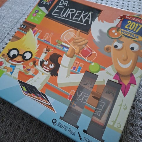 Dr. Eureka lautapeli sisältää värikkäitä palloja ja putkia. Peli kehittää loogista ajattelua ja nopeutta. Sopii useille pelaajille ja eri ikäryhmille. Kaikki osat tallessa ja hyvässä kunnossa.