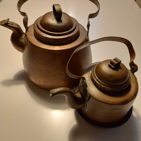 Iso 3 litran kuparipannu ja saman sarjan 2 litran pannu sekä 2-litrainen pannu, jossa koristeellinen pinta. Kahdessa saman sarjan pannussa koristeena kantattu reunus lähellä pohjaa. Antiikkia eli ovat isoäitini äidin ja osa tuotu Karjalasta evakkomatkalla. Yhdessä leima pohjassa. Kaikki hienossa kunnossa. Myynnissä Lohjalla, mutta kulkeutuvat ilman postimaksua omien menojen mukaan Kamppiin, Espoon Ikealle ja Espoon keskukseen. Myös postitus onnistuu. . Hp. 50 euroa/kpl.