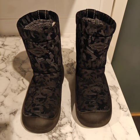 Kuomat koko 33, vuoressa on pohjassa pieni reikä molemmissa saappaissa.