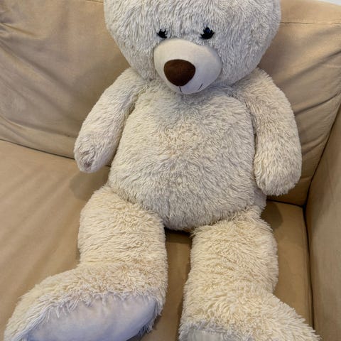 Iso pehmeä nalle, kork. 50cm. Ollut kehdon koristeena, ei ehditty leikkiä, hyväkuntoinen.