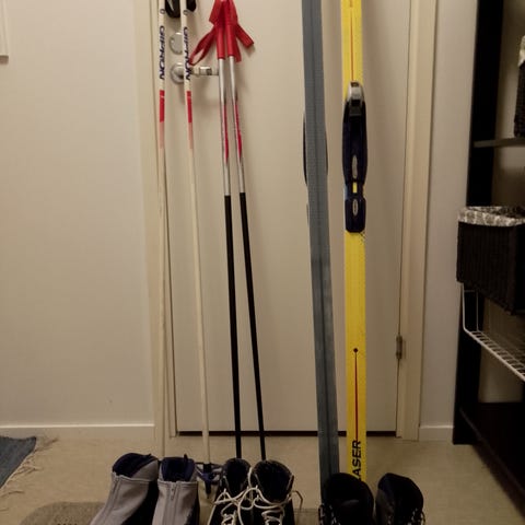 Joitakin vuosia vanha, mutta vähän käytetty setti väkisinhiihtoon. Sukset 189, sauvat 140 ja monot 41. Epäilen, että hyvä on jos on 100km sivakoitu. Olleet pitkään varastossa.