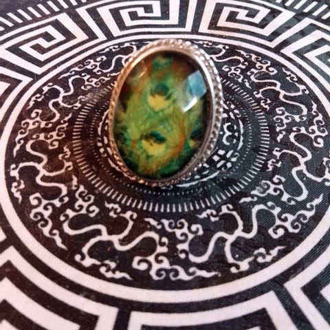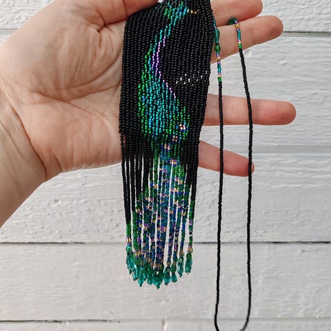 Myydään tyylikkäs naisten vintage kaulakoru lasi helmillä ja riikinkukko sulka koristeena