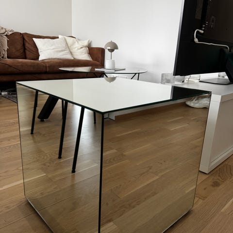 Myydään hopea värinen lasi hylly ovh;279€.