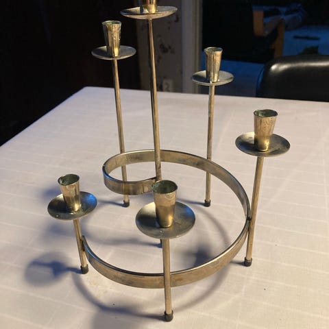 Gunnar Anderin 1960 suunnittelema siro Spiral kynttelikkö 6 kynttilälle. Kynttelikkö on messinkiä. Tämä on hieno koriste oikeilla kynttilöillä tai pienillä Led valonauhalla koristeltuna.