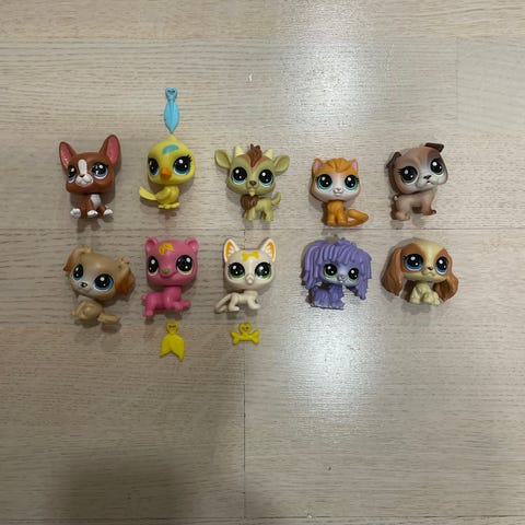 Littlest Pet Shop pienet hahmot, korkeus noin 1 cm. Hinta 3€/5 kpl tai 15€/28 kpl.