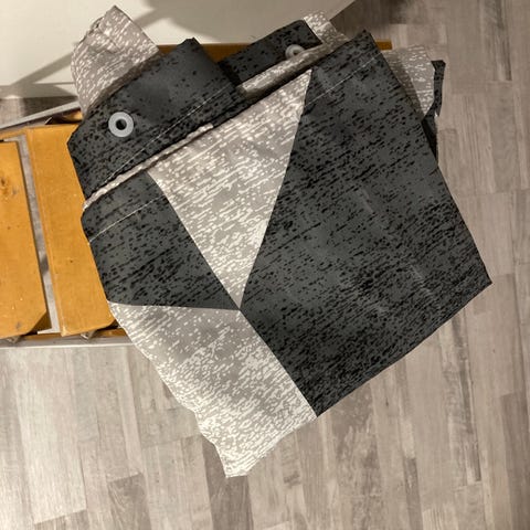 Käyttämättömäksi jäänyt Rustan suihkuverho sekä renkaat. 180 x 200cm.