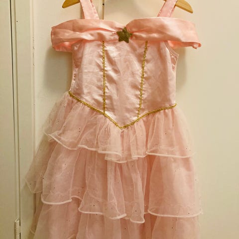 Juhlava vaaleanpunainen prinsessamekko helmillä, koko 8