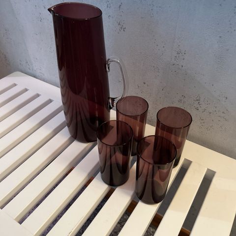 Iittalan vanha tyylikäs viininpunainen kannu joka vetää 1.8 litraa. Täysin uuden veroinen.