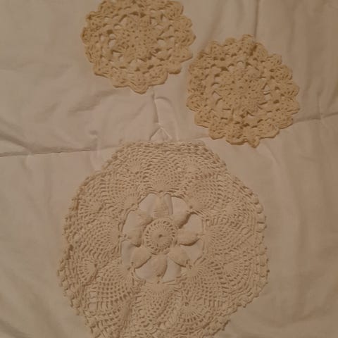 Myydään kaapissa olleita pitsiliinoja.yhteishinta.postikulut ostajalle.