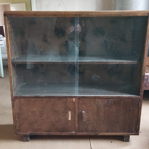 Myydään kuvissa näkyvä jaloilla oleva keittiössä ollut vitriini jossa työtaso+yläkaapisto purettuna.