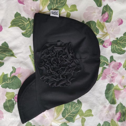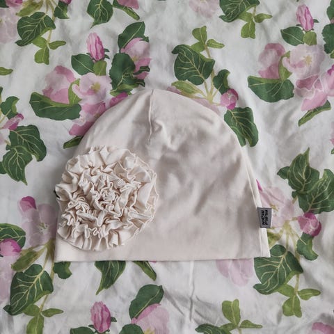 Kotimainen trikoopipo. Vain pari kertaa pidetty. Uudenveroinen. Merkissä lukee Nopsu Popsu. Ostettu Taitoshopista. Väri kaunis murrettu keltainen, kukkakoriste. Ympärysmitta n.54cm. Postikulut ostajalle.