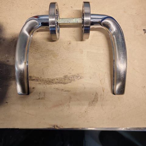 Koristeellinen messinkinen kullanvärinen koristeellinen ulko-oven kahva. Myynnissä Lohjalla, mutta kulkeutuu ilman postimaksua omien menojen mukaan Kamppiin, Espoon Ikealle ja Espoon keskukseen. Hp. 40 euroa.