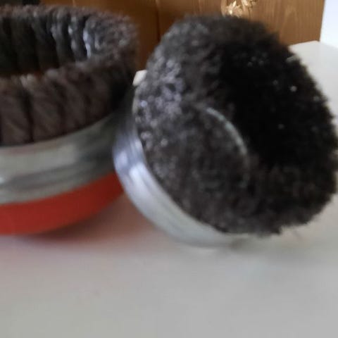 Omasta remontista ylijäänyt poraan kiinnitettävä hiontaharja kierretyillä metallilangoilla. Pienemmät kuvassa näkyvät harjat myyty. Myynnissä Lohjalla, mutta kulkeutuvat ilman postikuluja omien menojen mukaan Kamppiin, Espoon Ikealle ja Espoon keskukseen. Myynnissä myös muualla. Hp. 10 euroa