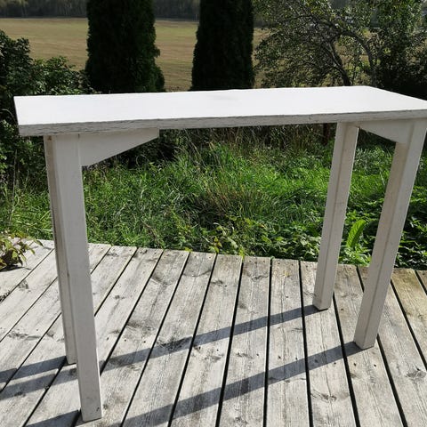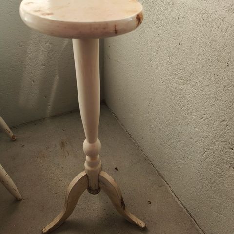 Kukkajalka, kukkataso, huonekasville pöytä, valkoinen puu vintage kukkahylly