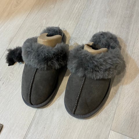 Uudet, aidosta lampaannahasta valmistetut tossut. Pehmeä ja pörröinen lampaankarva pitää jalat lämpiminä. Koko EU 37/38. Vastaa hyvin kokoa. Täydellinen joululahja joko itselle tai toiselle😊