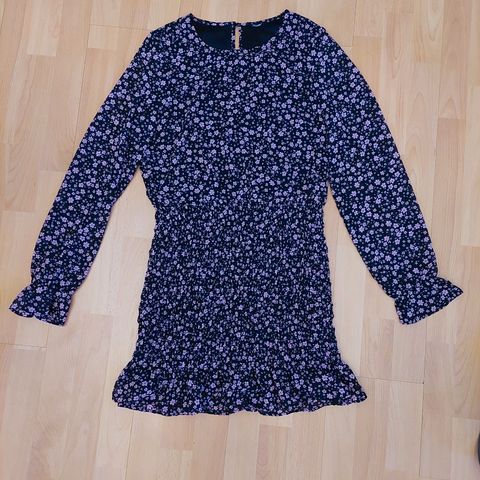 Mekossa on pitkä hiha ja vyötäröllä kuminauha, joka antaa istuvuutta.