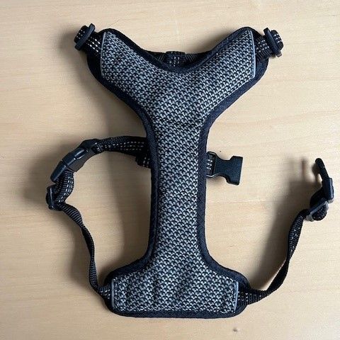 Koko XXS, olleet kääpiömäykyllä ensimmäisinä valjaina. Rinnanymp. n. 34 cm, joustaa vähän.