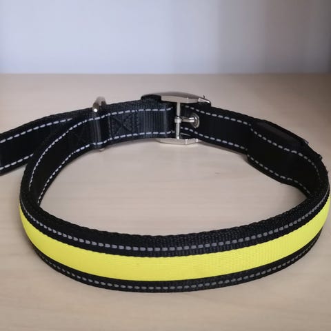 Creston koiran valokaulapanta musta/oranssi. Kaulapanta on varustettu USB-latausliitännällä ja virtakytkimellä. Pannan leveys 2,5 cm. Minimi pituus 44 cm ja max 52 cm.