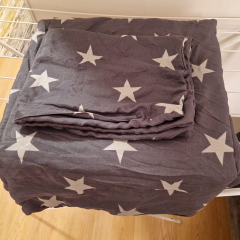 Siisti ja söpö pussilakana ja tyynynliina pikkuprinsessalle. Normi koko. Ostettu Ikea.