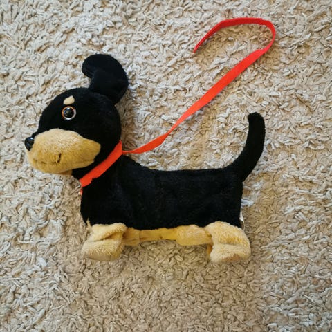 Hyväkuntoinen Elviksen kappaletta laulava koira. Korvat eivät enää heilu musiikin tahtiin. Sisältää toimivat paristot. Korkeus 26 cm.