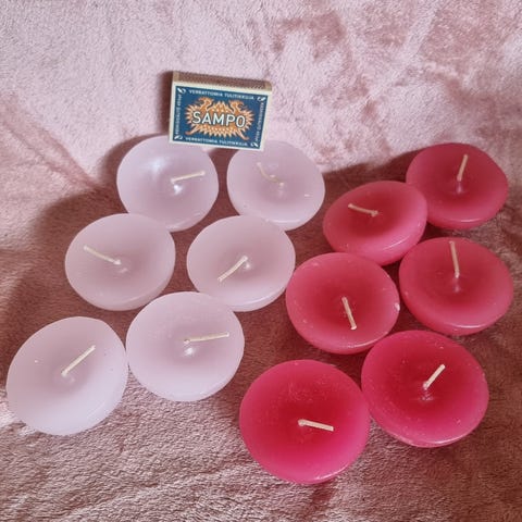 Halkaisija noin 23 cm. Paikka kynttilälle juoman lämpimänä pitämiseen