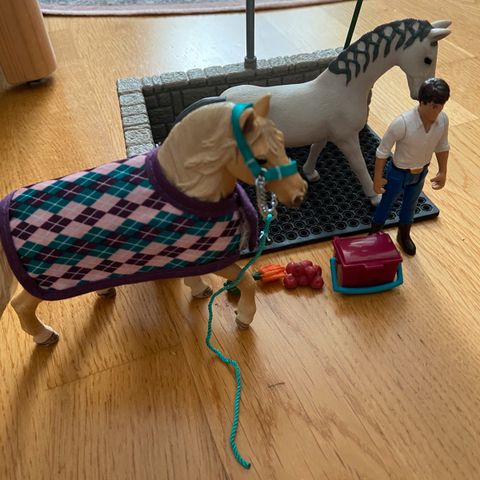 Schleich pesupaikka, hevonen hoitaja tarvikkeet