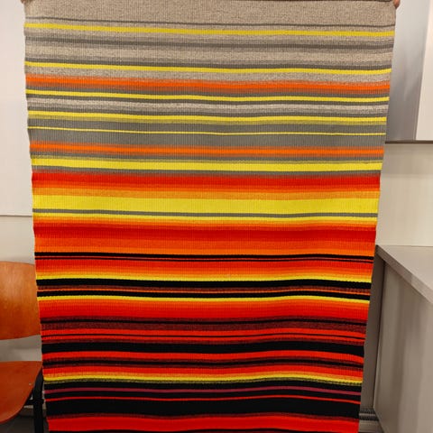 1970-luvulla käsin kudottu raanu.