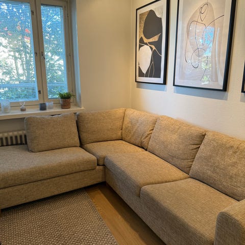 Hyvä kulmasohva, harmaa ja nopea nouto