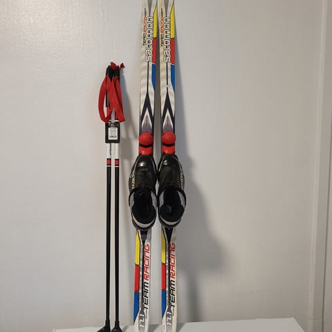 Hyväkuntoinen käytetty suksipaketti lapselle. Pieniä käytön jälkiä.