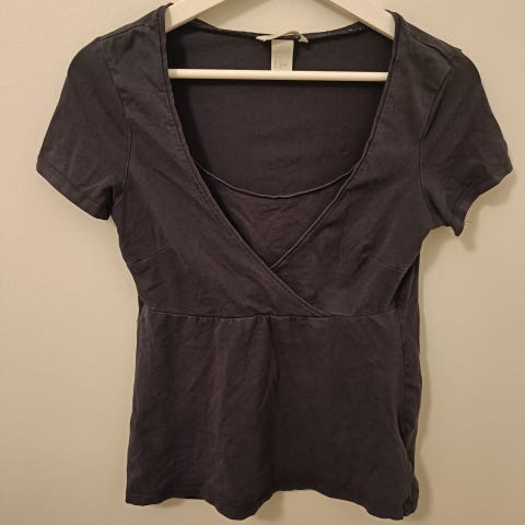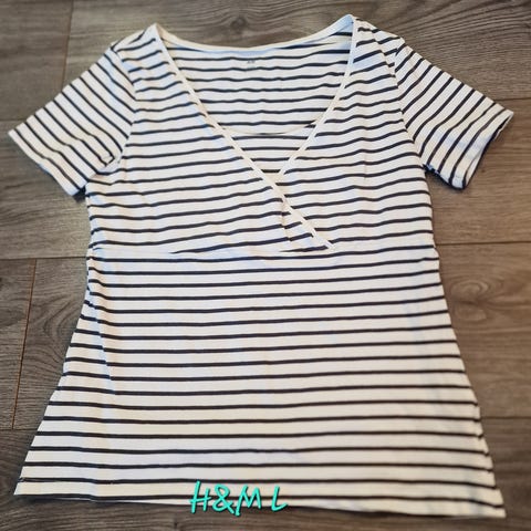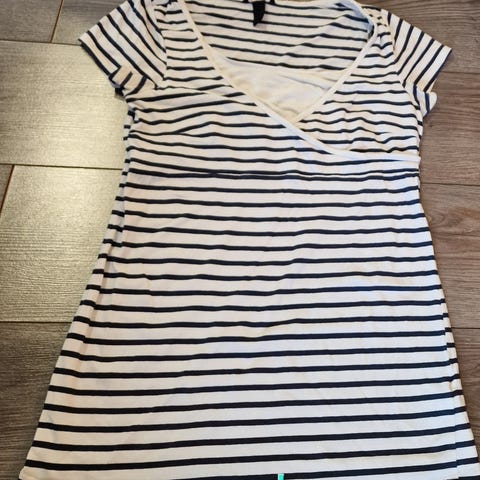 H&M -merkin imetyst-paita. Koko S. Väri valkoinen ja aran värin vuoksi näkyy kainaloissa pientä kellertymää. Mielestäni alupaitana ja kotipaitana menee hyvin siitä huolimatta.