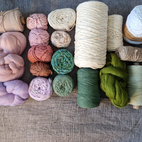 Makramee työhön ostettuja lankoja, osa käyttämättömiä.