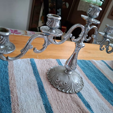 Metallinen viisihaarainen kynttilänjalka.