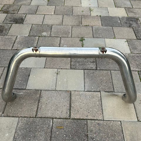 Kiillotettu roster valorauta. Leveys alhaalta 105cm ylhäältä 75cm. Putken halk. 75mm.