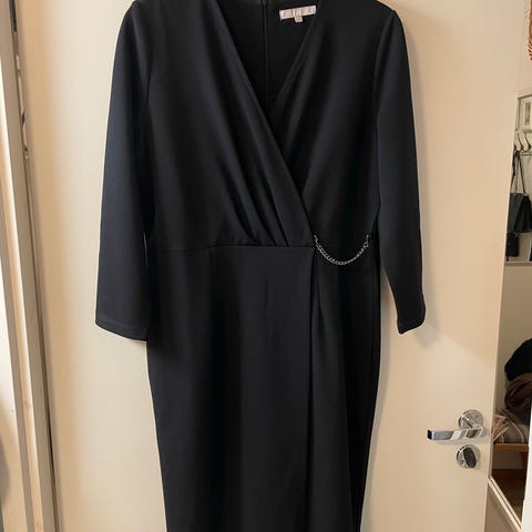 Juhla- tai cocktailmekko Musta/Kulta väreissä, valmistettu Nailon ja Polyester. Koko L, naisten malli.