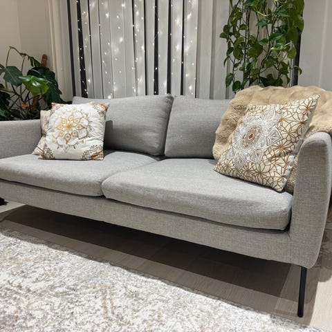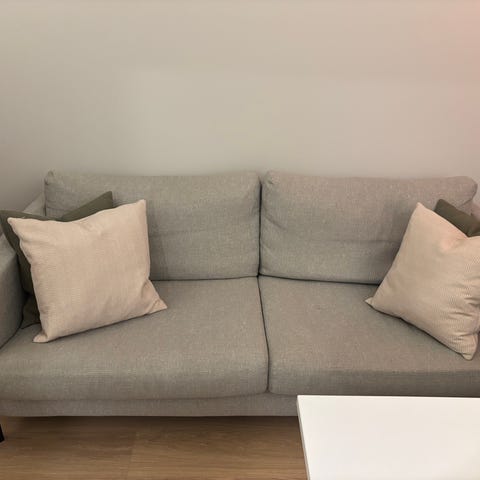 Kohtalaisessa kunnossa toisessa moduulissa ihan pieni sauma repeämä toinen ei ongelmaa sohvat ovat vain pesua vailla.
