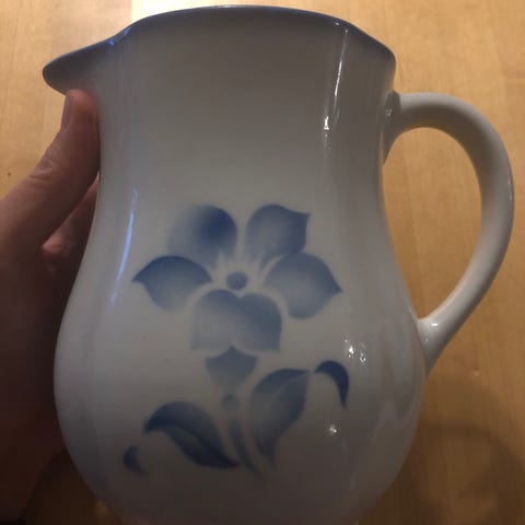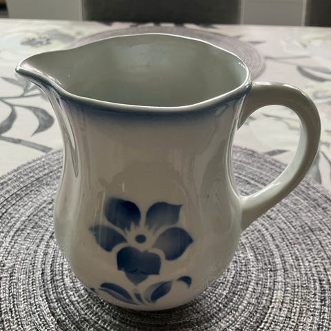Arabia Nina kannu sinivalkoinen kukkakuviolla