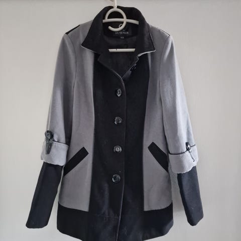 Myytävänä kuvissa näkyvä villakangastakki karvavuorella. Koko L, 40/42.