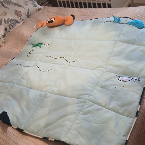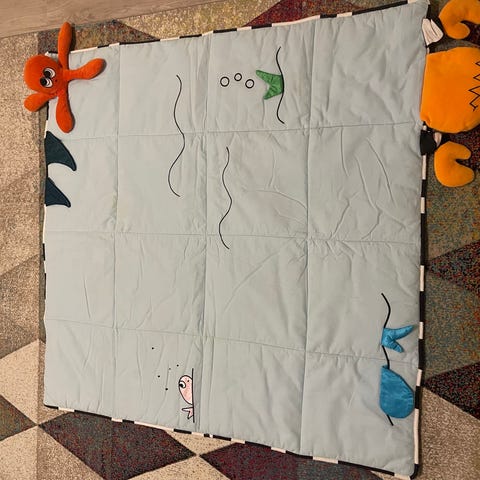 Myydään vauvan iso leikkimatto. Vasta pesty. Pari pientä haaleaa tahraa huomasin, näistä kuva. Koira/kissatalous